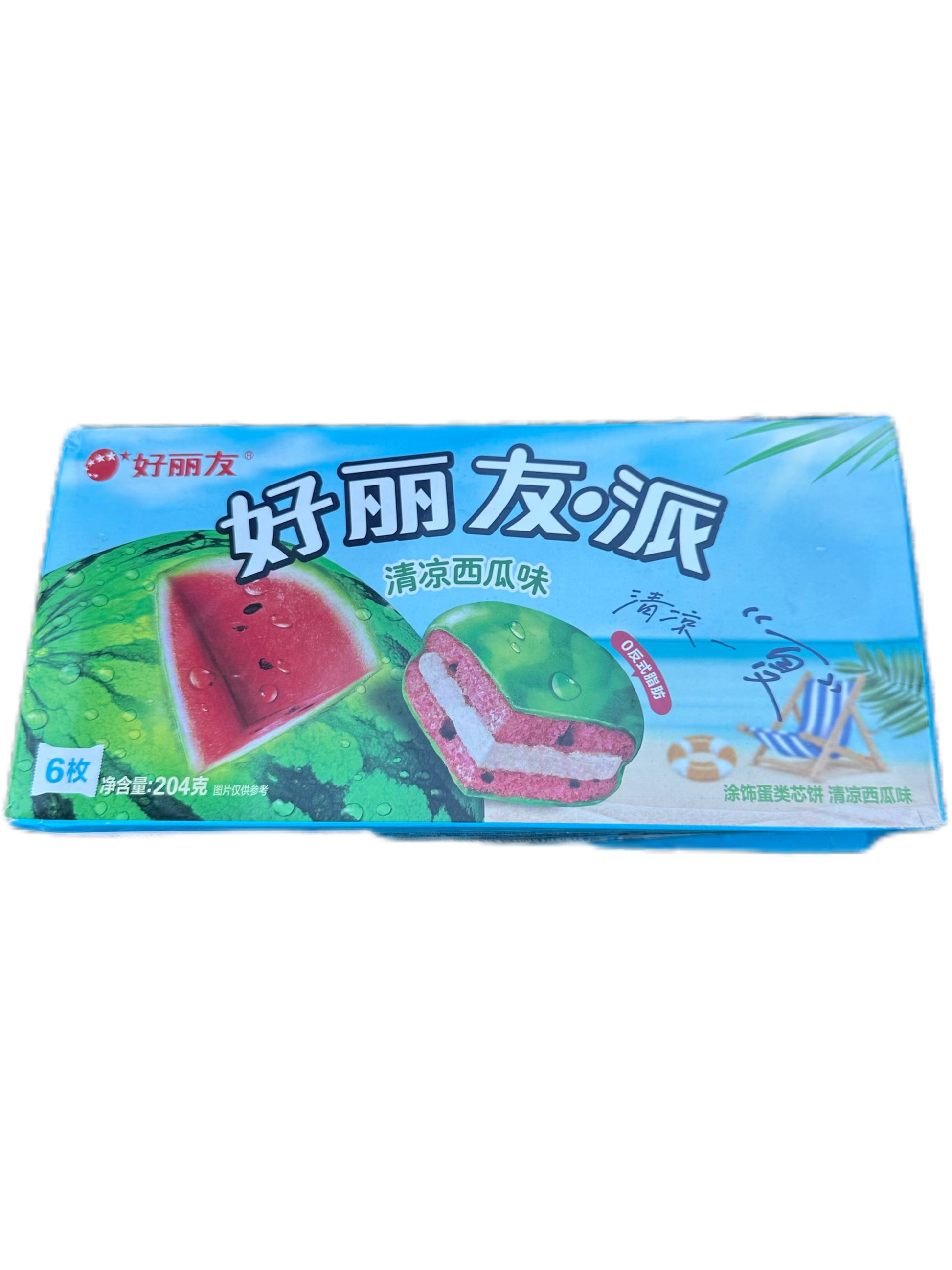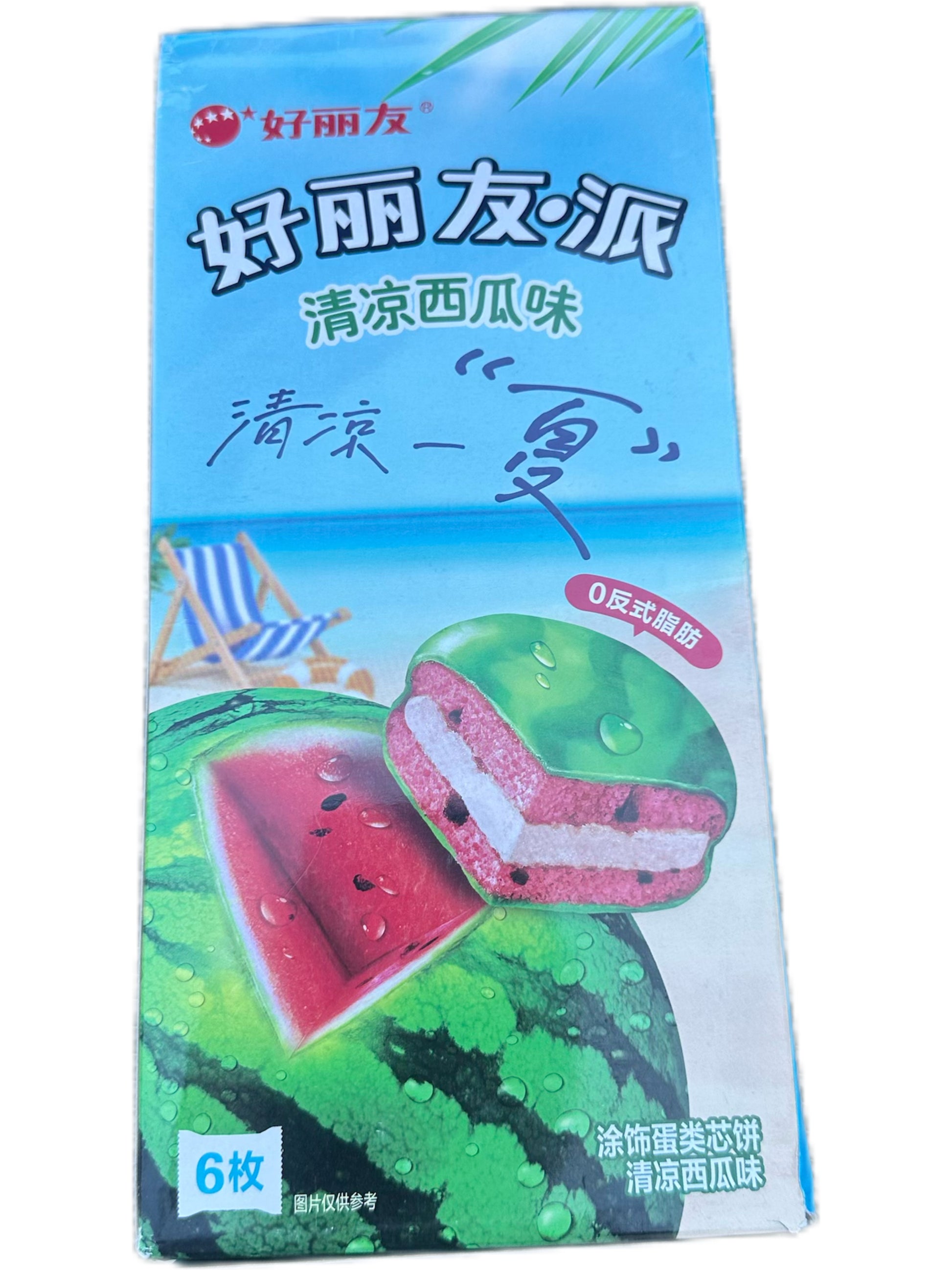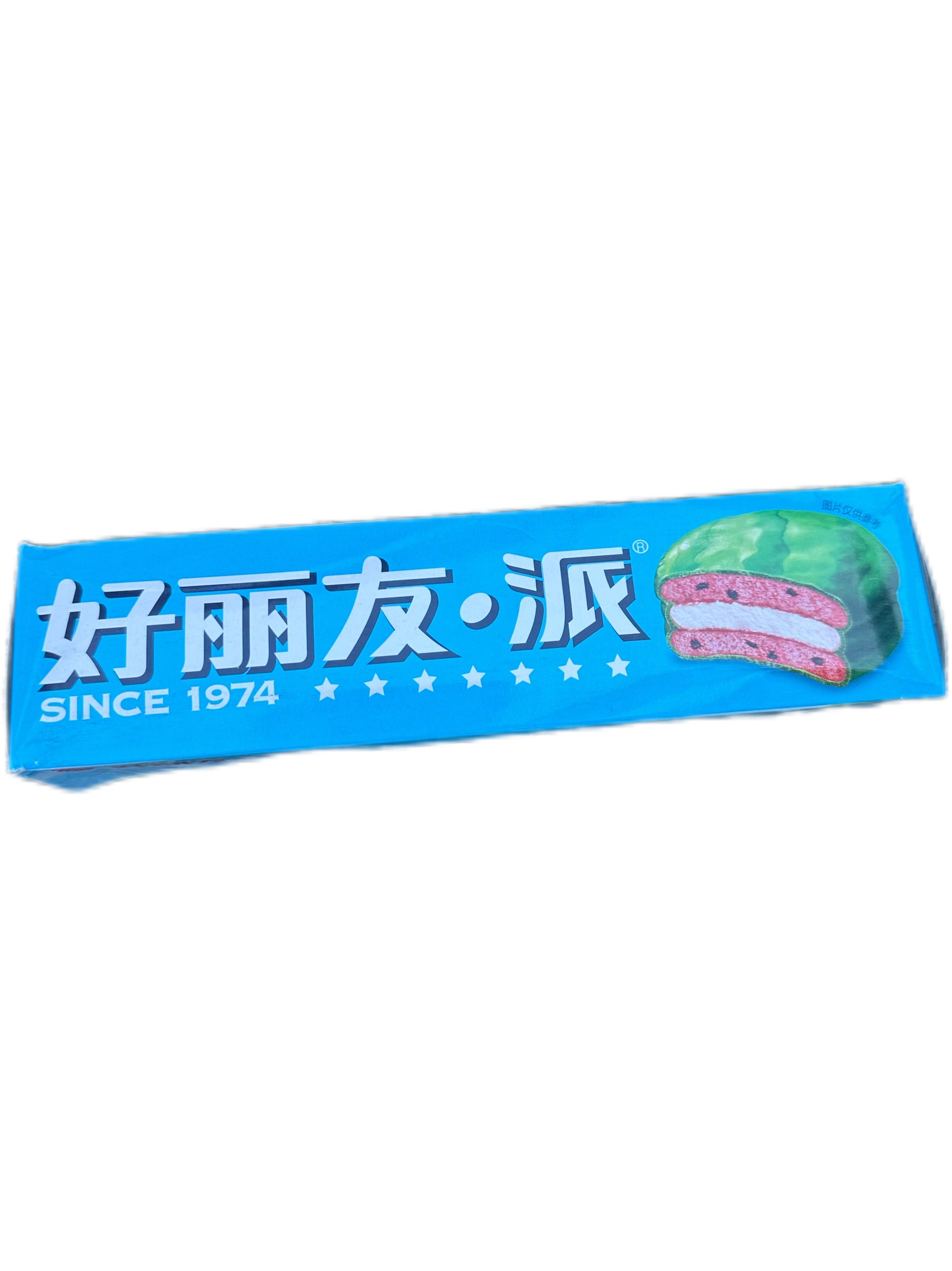 Orion Vesimelonin makuinen pieni kakku. Vesimelonin maulla. Itse tykkäsin, mutta kaikkien makuun ei ole vesimelonista valmistetut makeiset. Kannattaa testata!